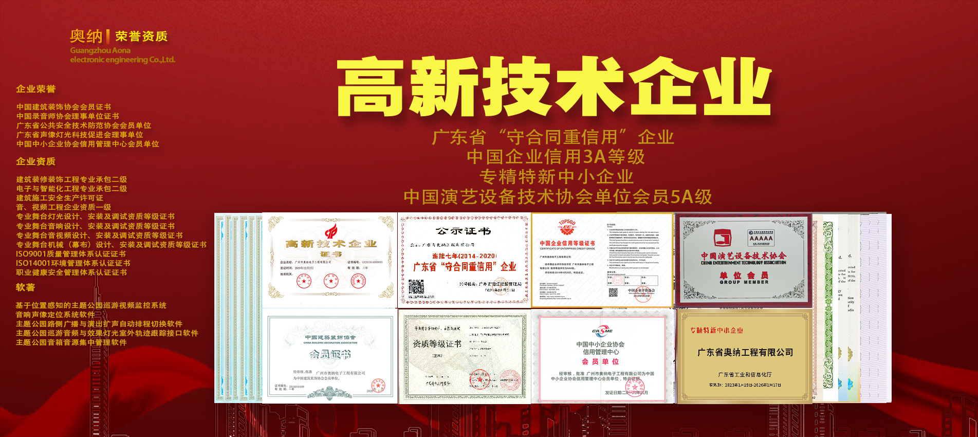 奧納工程深耕文化領(lǐng)域二十載,已成為行業(yè)最具影響力的一站式服務(wù)平臺。作為一家專注于“聲光像、智能化、聲學(xué)裝修、文化旅游”四大領(lǐng)域的高新技術(shù)企業(yè),奧納旨在為客戶提供從導(dǎo)演創(chuàng)編、顧問咨詢、創(chuàng)意策劃、技術(shù)方案到定制研發(fā)、產(chǎn)品供應(yīng)、工程施工及售后維護(hù)的全過程服務(wù)。